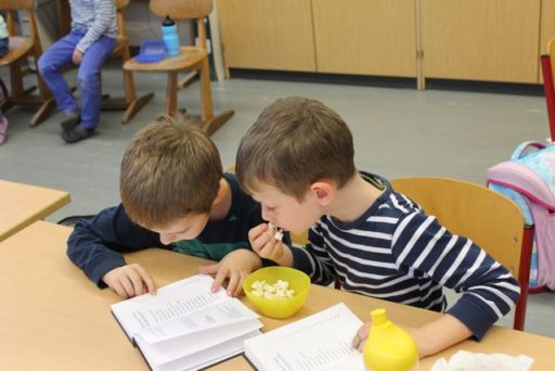 Am Freitag, den 25. Oktober, trafen sich die Klassen 1a und 1b in der Frühstückspause und belohnten sich passend zum Buchstaben P mit leckerem, selbstgemachten Popcorn. Frau Stüber hatte ihre…
