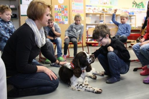 Am Montagmorgen konnte die Klasse 2b einen neuen Schüler der ganz besonderen Art in der Klasse begrüßen. Hund Sputnik war zum 1. Mal zu Besuch gekommen und schaute sich alles…