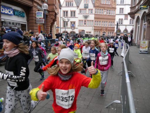 Eisekalt war es dieses Jahr und dennoch fanden sich 57 Ausonius-Kinder aufgeregt am Hauptmarkt ein und freuten sich auf ihren Lauf. Die Nummern wurden festgenadelt, das Marktkreuz wie jedes Jahr…