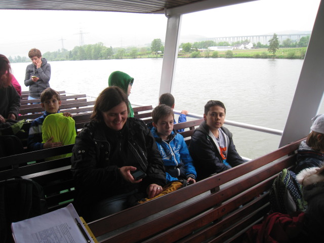 Die Kinder der Ausonius Grundschule haben sich am Freitag, den 2. Mai, mit Eltern, Lehrern und Geschwisterkindern auf den Weg ihres Namensgebers gemacht. Dies war die erste Aktion im Jubiläumsjahr der nun 50 jährigen Grundschule. Auf der von Ausonius in seinem bekanntesten Gedicht „Mosella“ beschriebenen und viel gelobten Mosel ging es an grünen Ufern und Weinbergen entlang nach Riol. Von dort wanderten alle bis nach Longuich zur „Villa Urbana“. Ähnlich wie Ausonius in Frankreich hatte dort vermutlich eine reiche römische Familie ihren Ruhesitz. Dort lebten auch Bedienstete, Lehrer und Kindermädchen. Sie bauten Wein an, Getreide und Obstbäume. Einheimische und Sklaven halfen bei der Ernte. Es gab mehrere Gebäude und sogar ein Badehaus. Leider hatten die jungen Besucher der römischen Anlage nur wenig Zeit zum Verweilen und Verkosten der zum Teil nach römischen Rezepten zubereiteten Speisen. Einige dicke Regenwolken näherten sich bedrohlich. Vielleicht hatte Ausonius ein Wort bei Petrus eingelegt, denn der Wetterpatron, der auch als großes Wappen auf dem Schiff zu sehen war, bewahrte vor einem größeren Regenguss. Gerade rechtzeitig erreichten alle das Schiff, das die Kinder und Erwachsenen wieder sicher am Zurlaubener Ufer absetzte.