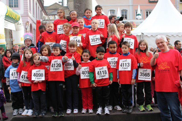 Eisekalt war es dieses Jahr und dennoch fanden sich 57 Ausonius-Kinder aufgeregt am Hauptmarkt ein und freuten sich auf ihren Lauf. Die Nummern wurden festgenadelt, das Marktkreuz wie jedes Jahr…