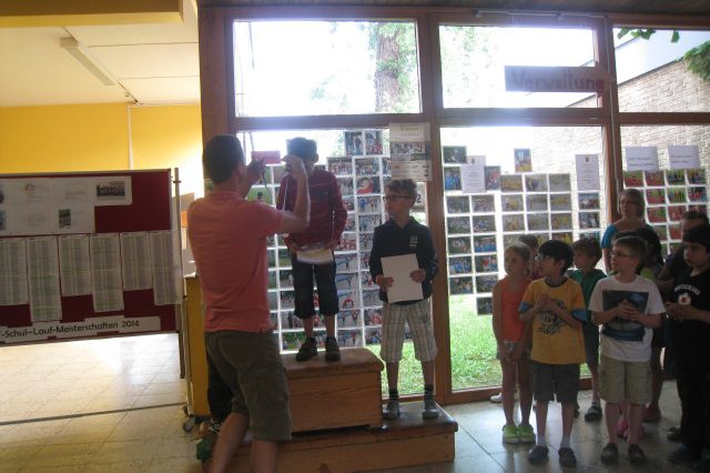 Seit 2008 darf ein Termin in der Schuljahresplanung nicht fehlen: die Schullaufmeisterschaften im Mai im Moselstadion. Zwischen 1500 und 2000 junge Läufer aus Trier und der Region kämpfen über 1500 m um die ersten Plätze und die begehrten Pokale. In zehn Läufen starten die schnellsten Schüler und Ausonius ist dabei. Etwa 60 unserer Kinder sind es jedesmal, die sich über die große Runde auf den Weg machen und alles geben. Dabei herrscht echte Wettkampfatmosphäre und man muss schon ganz schon fit sein um sich gegen 300 Mitläufer auf die vorderen Plätze zu kämpfen. Um so schöner, dass es jedes Jahr wieder ein paar unserer Lauftalente auf das Podium schaffen und einige Pokale stolz in Empfang genommen werden konnten. Der Jubel der gesamten Schulgemeinschaft bei der Ehrung in der Schule ist garantiert!