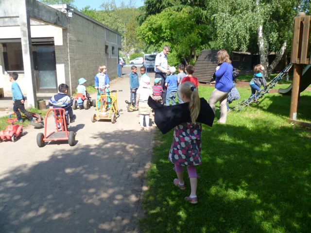 Das Puppenspielerteam der Polizei vermittelt Lernziele aus den Bereichen Verkehrs- und Kriminalprävention mit der Methode des Puppenspiels. Erst wurden die Kinder, spielerisch auf die Lernziele vorbereitet, anschließend folgte die Puppenspielvorstellung und zum Abschluss wurde das Erlebte im Gespräch mit den Kindern reflektiert.