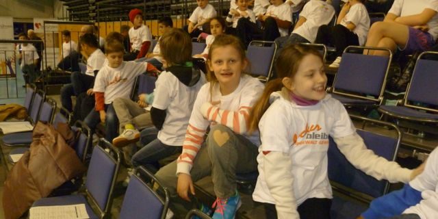 Einmal pro Woche können 80 Flüchtlingskinder aus der Trierer Aufnahmeeinrichtung für Asylbegehrende in der Trierer Arena Ball spielen, rennen oder Gymnastik machen. Der Auftakt des Gemeinschaftsprojekts fand am Donnerstag statt. Die Klasse 3a durfte mit dabei sein. Gemeinsam mit den Flüchtlingskindern spielten sie das Zahlenspiel und sangen und tanzten zu zwei Bewegungsliedern. Da viele Vertreter aus Politik und Sport sowie Sponsoren des Projektes anwesend waren, folgten die Kinder auch aufmerksam deren kurzen Reden und Grußworten.