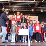 Und so stürmten dann auch alle gemeinsam jubelnd auf die Bühne und nahmen „ihren“ Scheck für die teilnahmestärkste Schule entgegen. Und es sah ganz so aus, als wollte auch Herr Ruschel viel lieber laufen und feiern….. und kein bisschen rechnen. 🙂