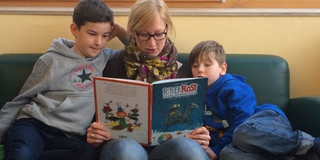 Im Laufe des Vormittags kommen die Lesepaten in die 1a und 1b und lesen mit einzelnen Kindern in der Fibel, bearbeiten spezielle Forscher-Leseaufträge und lesen aus den ausgeliehenen Büchern vor. Diese gezielte Förderung zeigt natürlich Erfolg und macht darüber hinaus allen Beteiligten viel Freude!