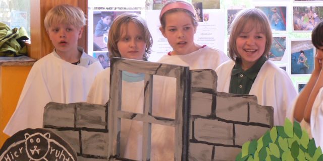 Am 1. und 2. April trafen sich die 3. und 4. Klassen in der Schule, um für unser Grusical „Geisterstunde auf Schloss Eulenstein“ (Musik von Peter Schindler, Text von Christoph Mohr und Peter Schindler) zu üben. Am ersten Tag probten alle Kinder mit dem Chor. Wir übten die Lieder „Das Geburtstagständchen“, „Das Kettenrasselhuhulied“ und „Die Geisterparty“. Danach hatten wir eine halbe Stunde Zeit, um uns auszutoben und die Kuchen von den Eltern und Kindern zu essen. Nach der langen Pause übten wir wieder weiter. Als es halb 7 wurde, kamen schon die ersten Eltern und wollten die Kinder abholen.