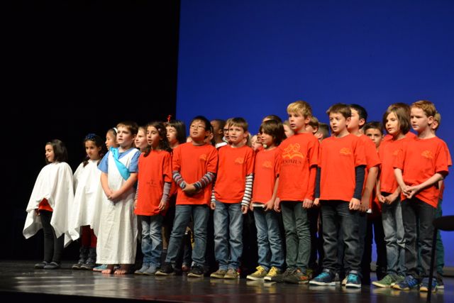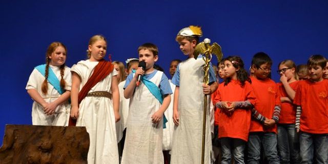 Einen ganz besonderen Auftritt hatten die Ausonius-Singers, der Chor der Ausonius-Grundschule, am Mittwoch, den 8. Oktober. Von der Kulturstiftung wurden wir zu einer Jubiläumsveranstaltung ins Theater Trier eingeladen. Da uns die Kulturstiftung besonders im letzten Jahr finanziell sehr großzügig unterstützt hat, damit unser Musical „Mit Ausonius unterwegs“ überhaupt geschrieben werden konnte, war es natürlich selbstverständlich, dass wir dieser Einladung nachkommen. Präsentiert haben wir vier Lieder aus dem vergangenen Musical, umrahmt von einer Kurzfassung unseres Stückes. Das war für alle Beteiligten ganz schön aufregend. Wann hat man auch schon mal die Gelegenheit, selbst in einem großen Theater aufzutreten?